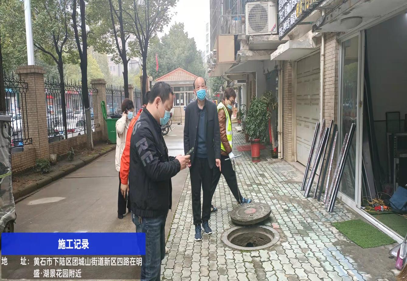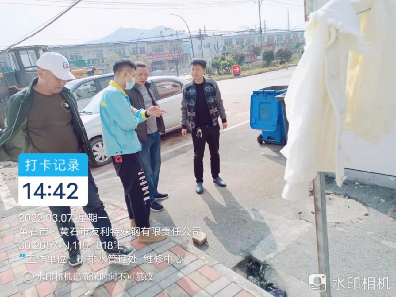 2022年3月7日,市政公用局徐劲松、维修中心李刘春对西塞山加油站开展雨、污管网复检。