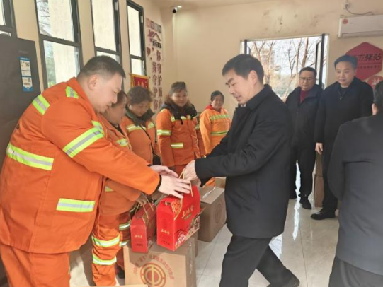 2月11日下午,市委副书记郝胜勇、市委副秘书长柯补甲带领市委社会工作部、市总工会、团市委、市妇联、市残联等单位相关负责同志,来到位于颐阳路湖边的工会城市驿站,亲切慰问一线环卫工人代表,并向全体环卫工作者致以诚挚的新春祝福。
