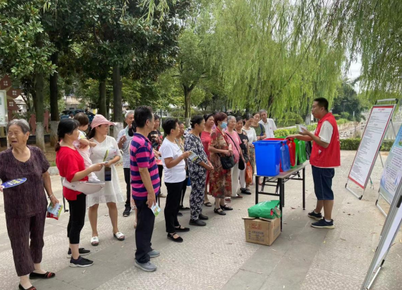 为进一步推动垃圾分类工作的开展,普及生活垃圾分类知识,宣传环境保护,9月19日上午,黄石港区卫生环保志愿服务队的志愿者们来到黄石港老市委小区的湖边小广场,开展了一次广场生活垃圾分类宣传活动。