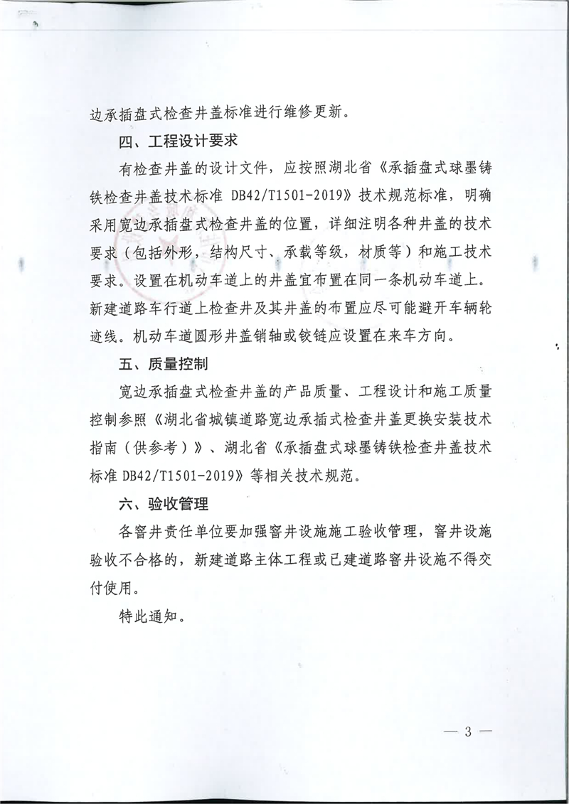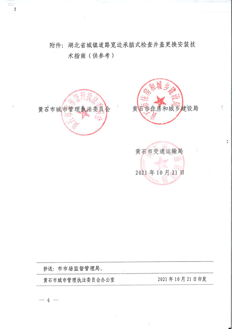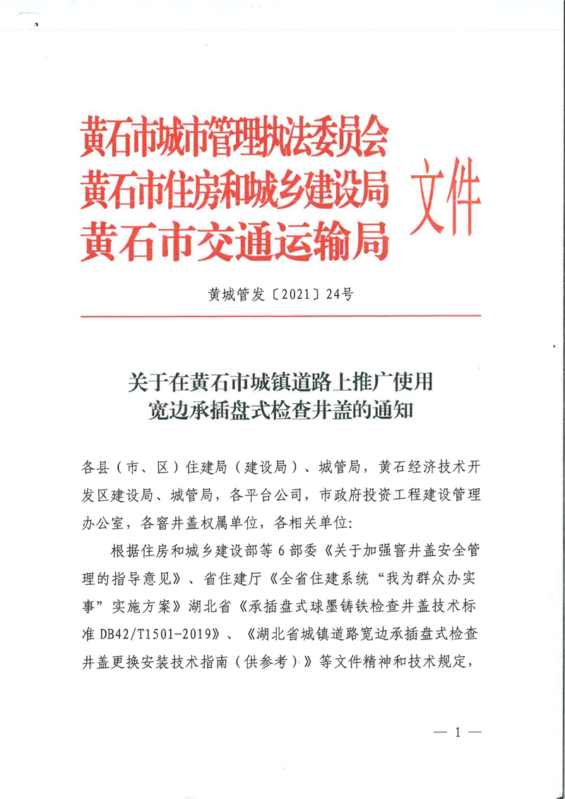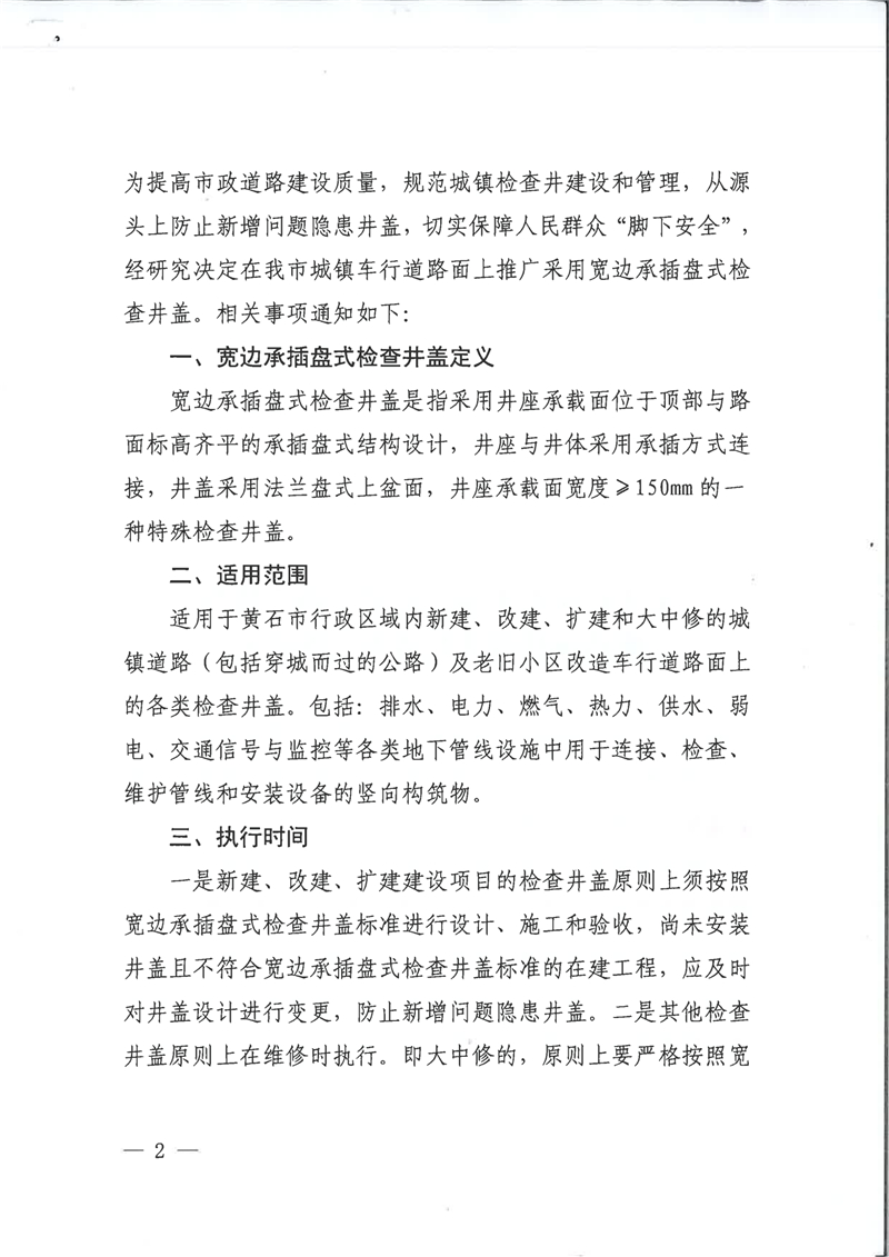 关于在黄石市城镇道路上推广使用宽边承插式检查井盖的通知