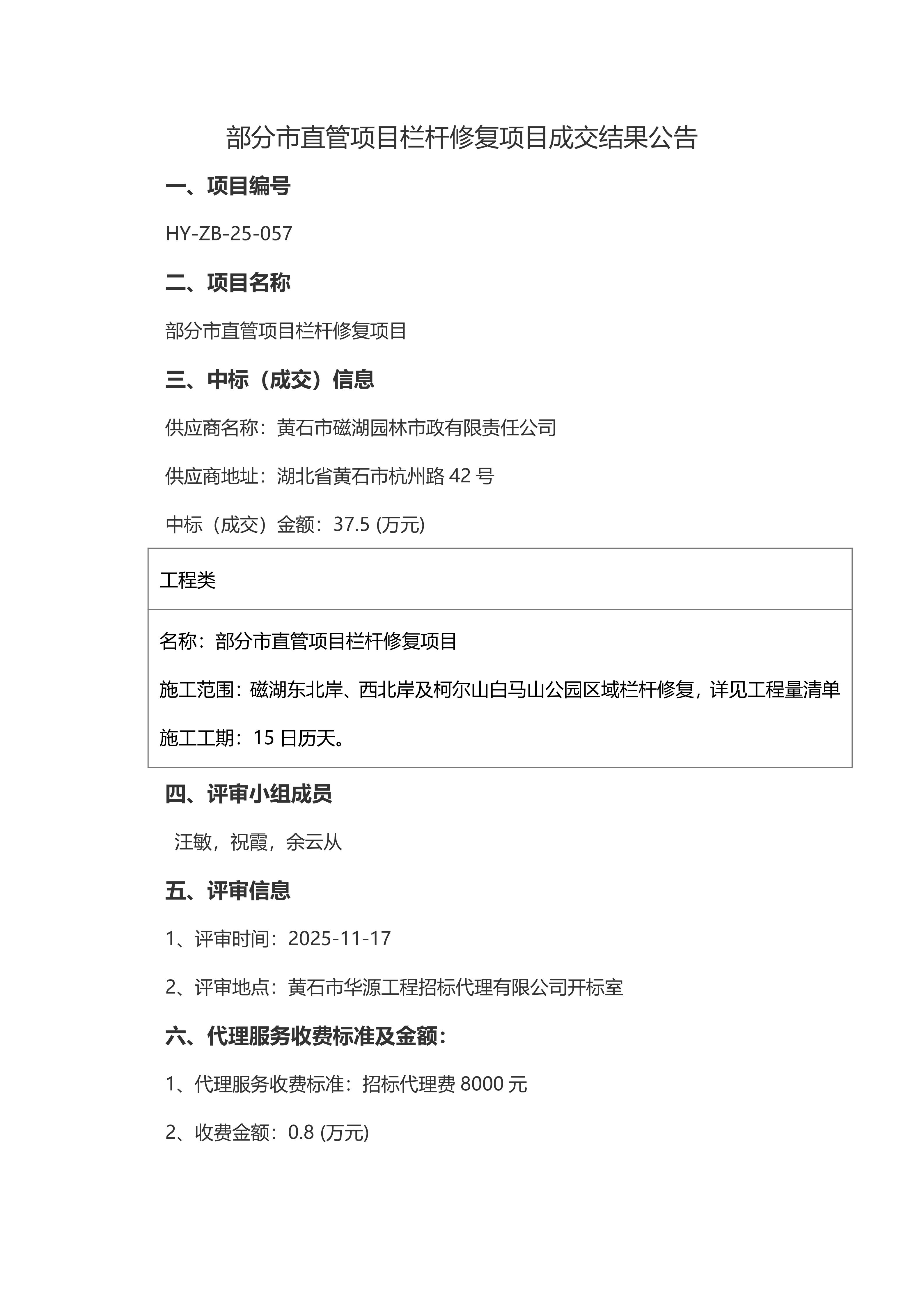部分市直管项目栏杆修复项目成交结果公告