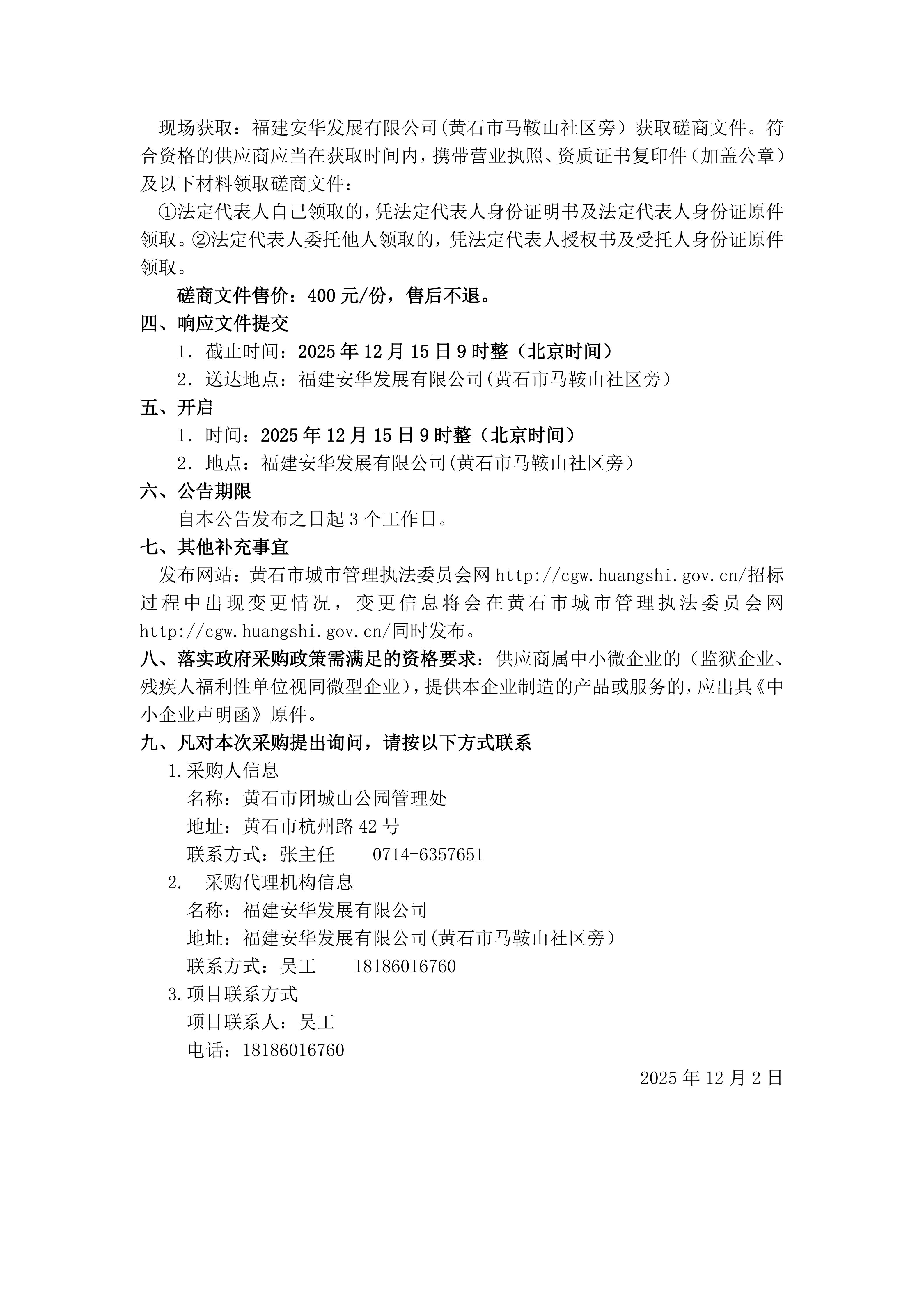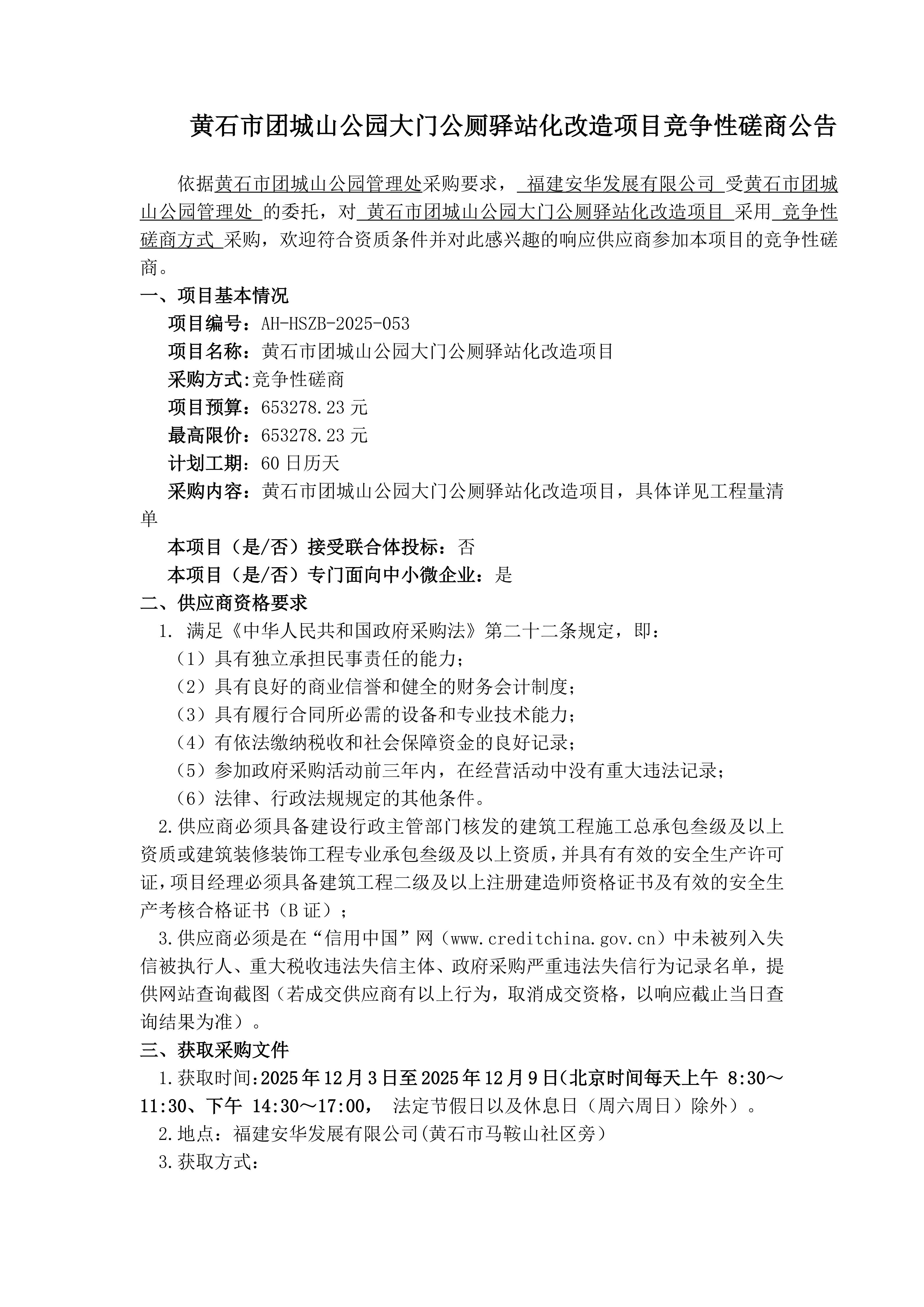 黄石市团城山公园大门公厕驿站化改造项目竞争性磋商公告