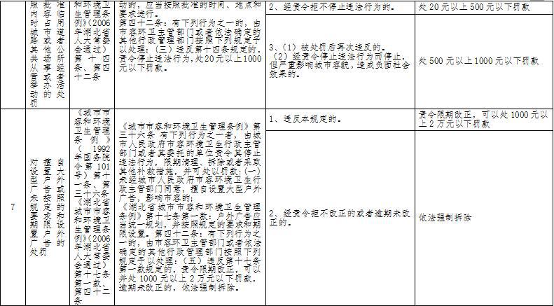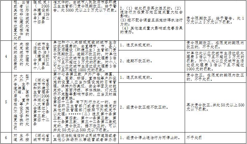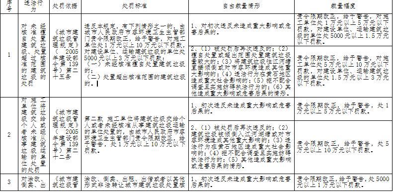 行政处罚自由裁量权标准目录