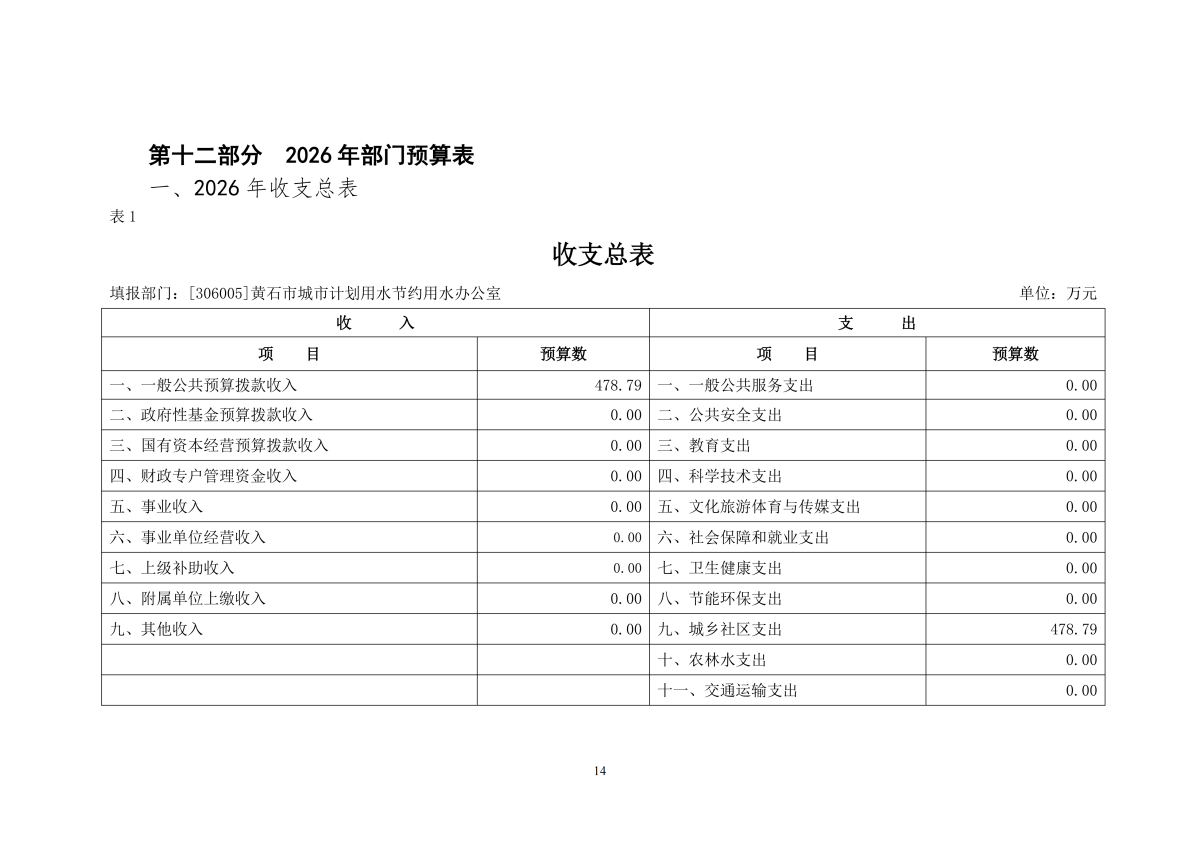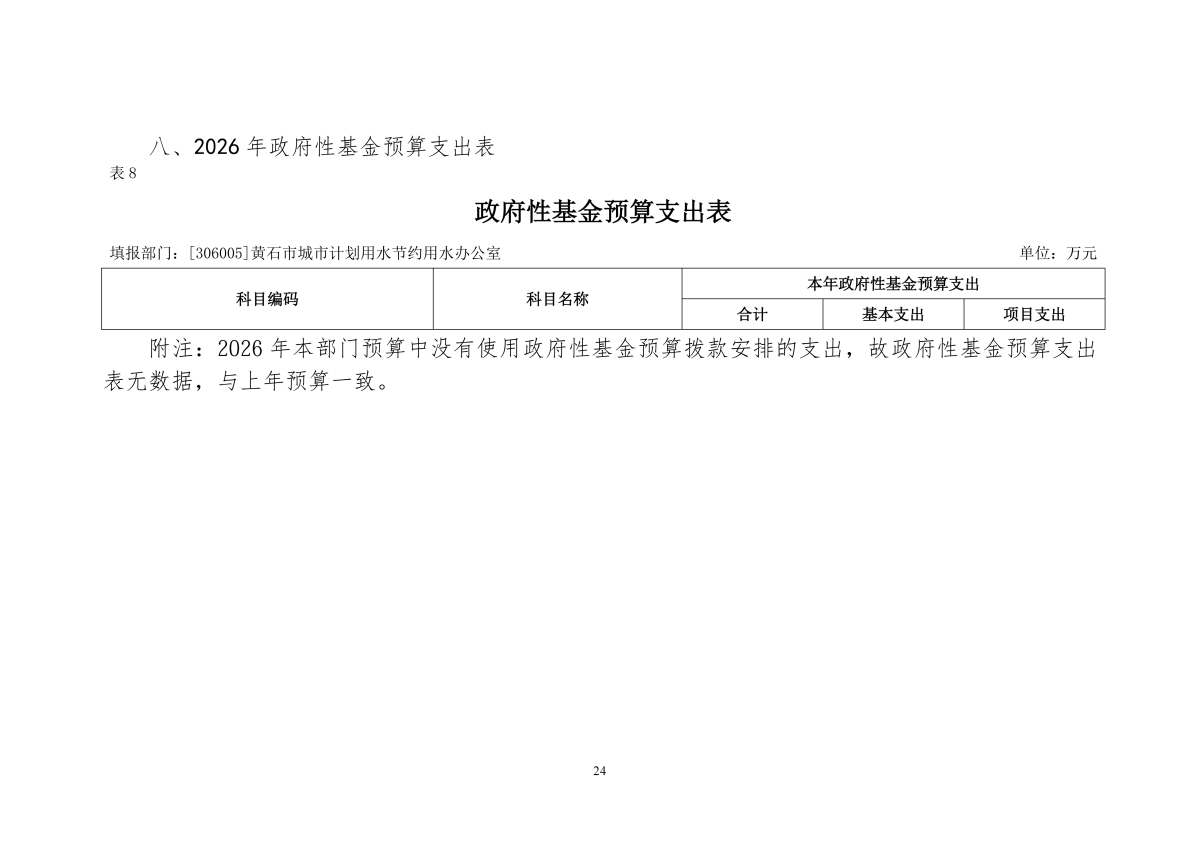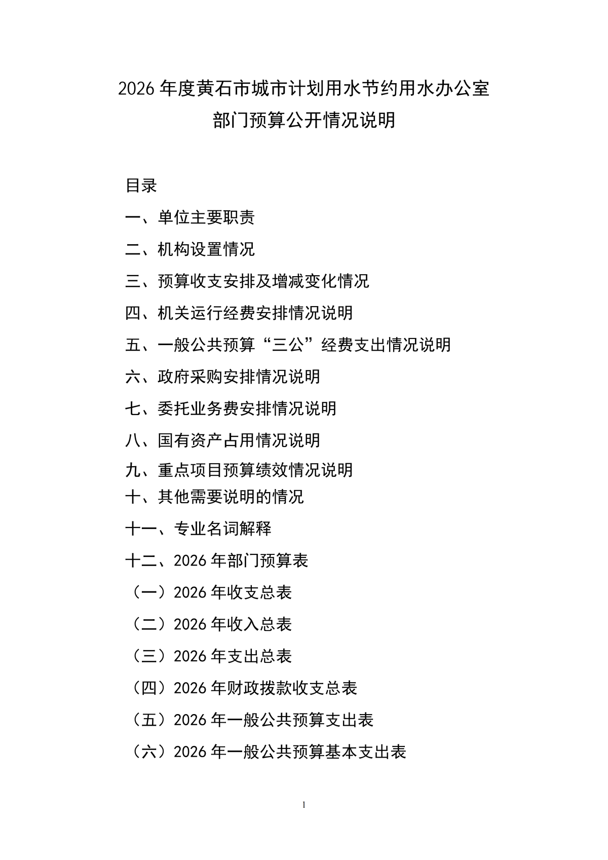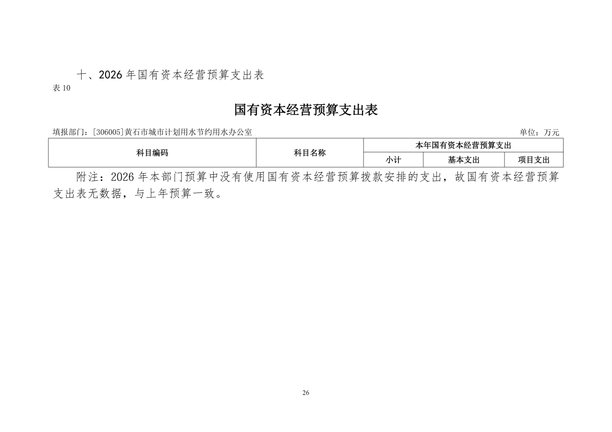 2026年度黄石市城市计划用水节约用水办公室部门预算公开情况说明
