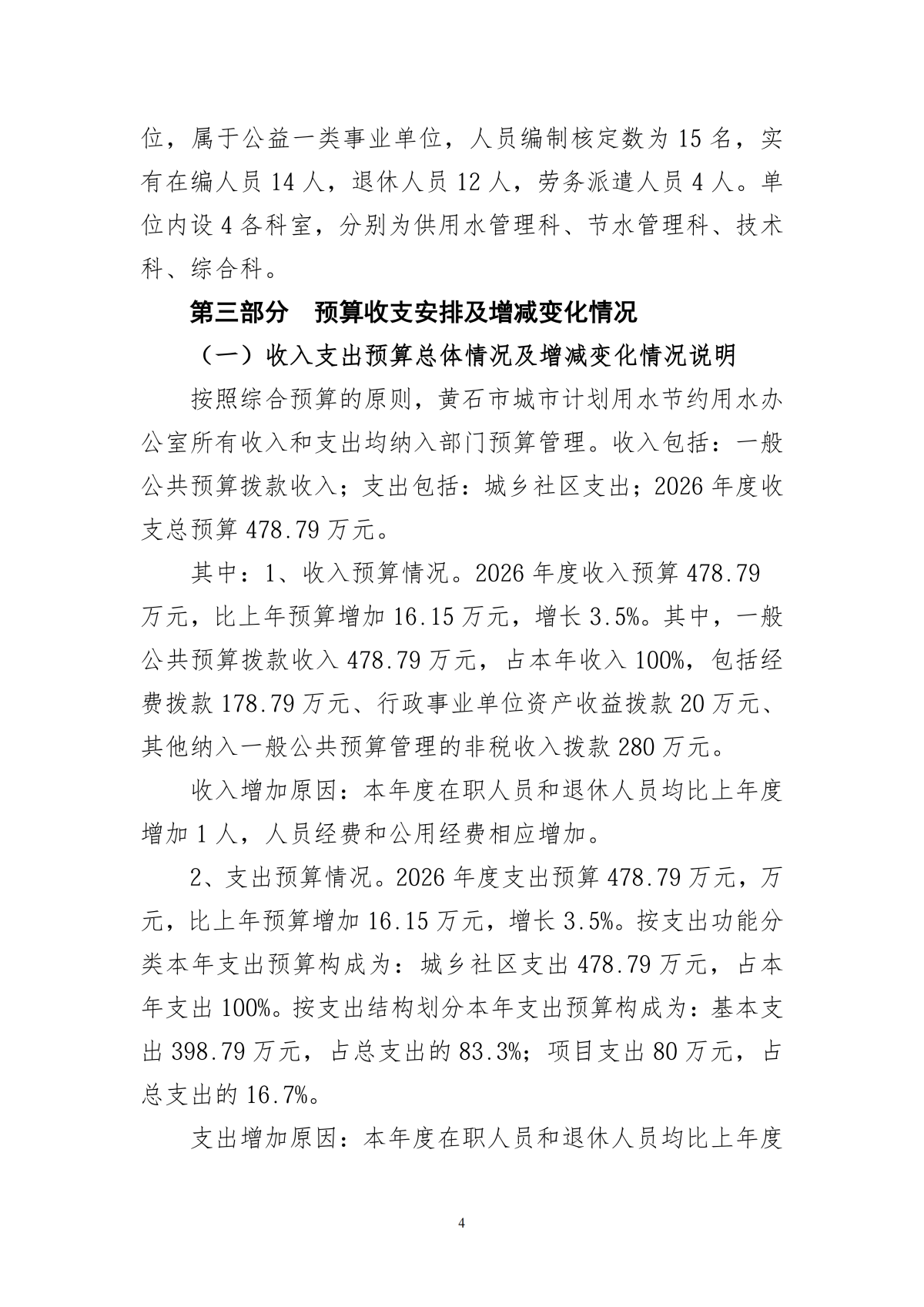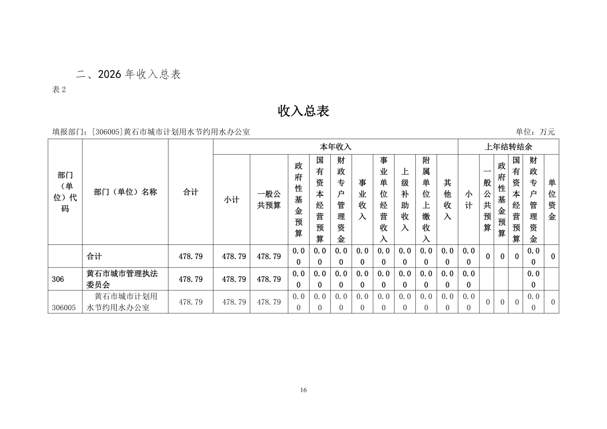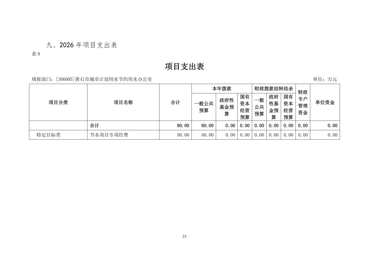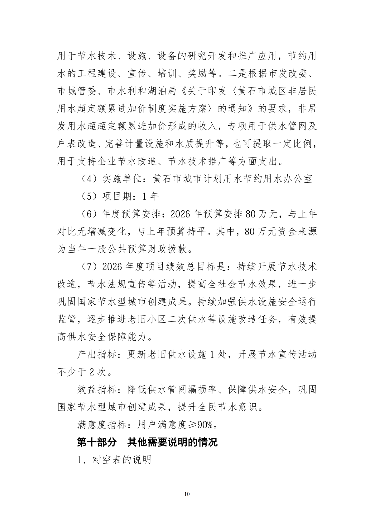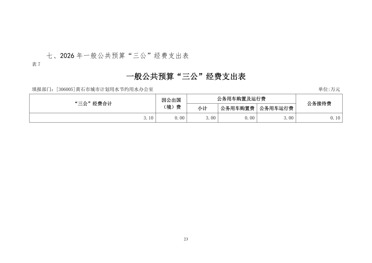 2026年度黄石市城市计划用水节约用水办公室部门预算公开情况说明