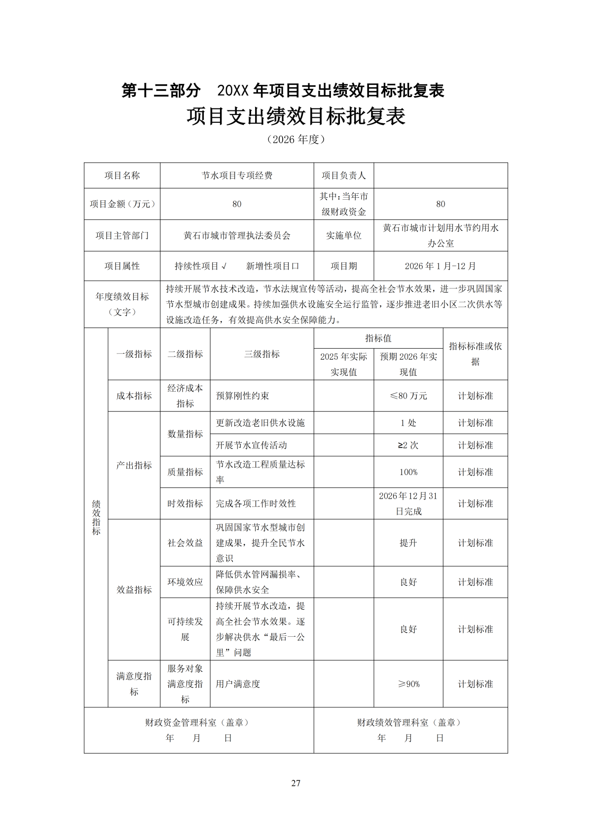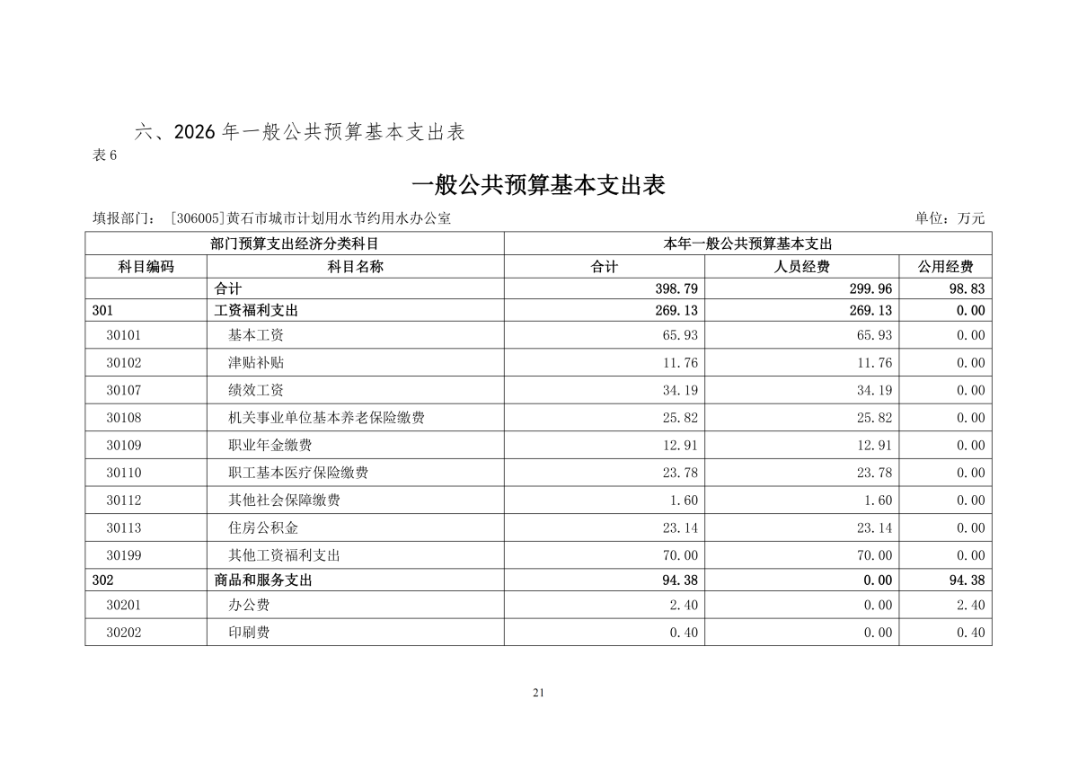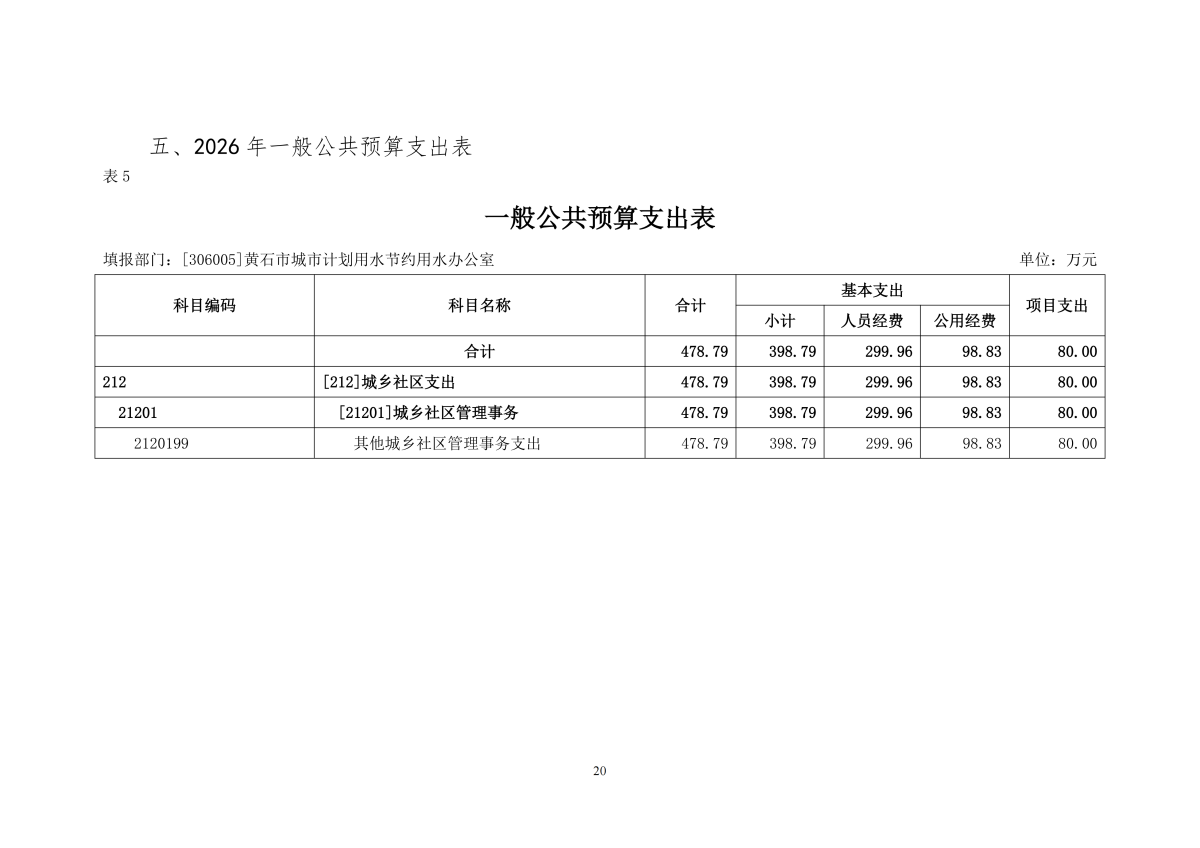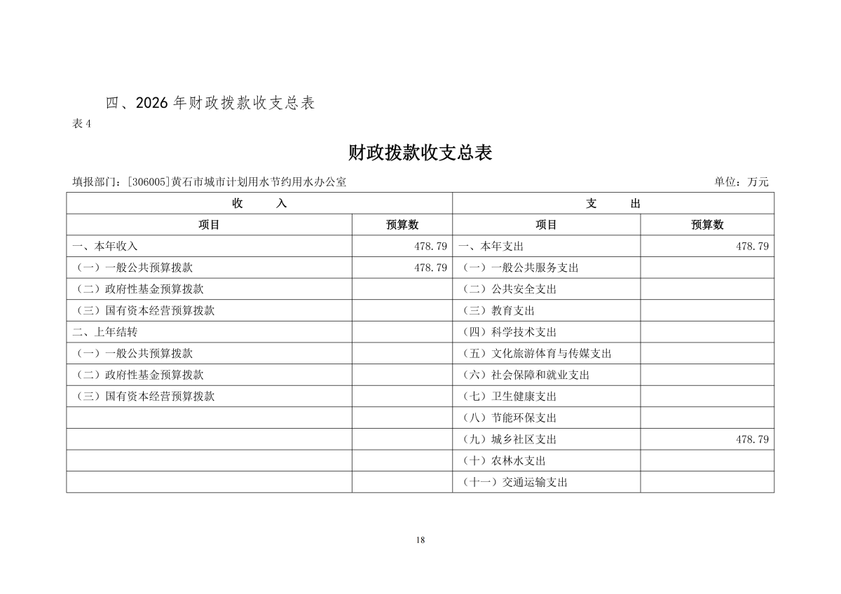2026年度黄石市城市计划用水节约用水办公室部门预算公开情况说明
