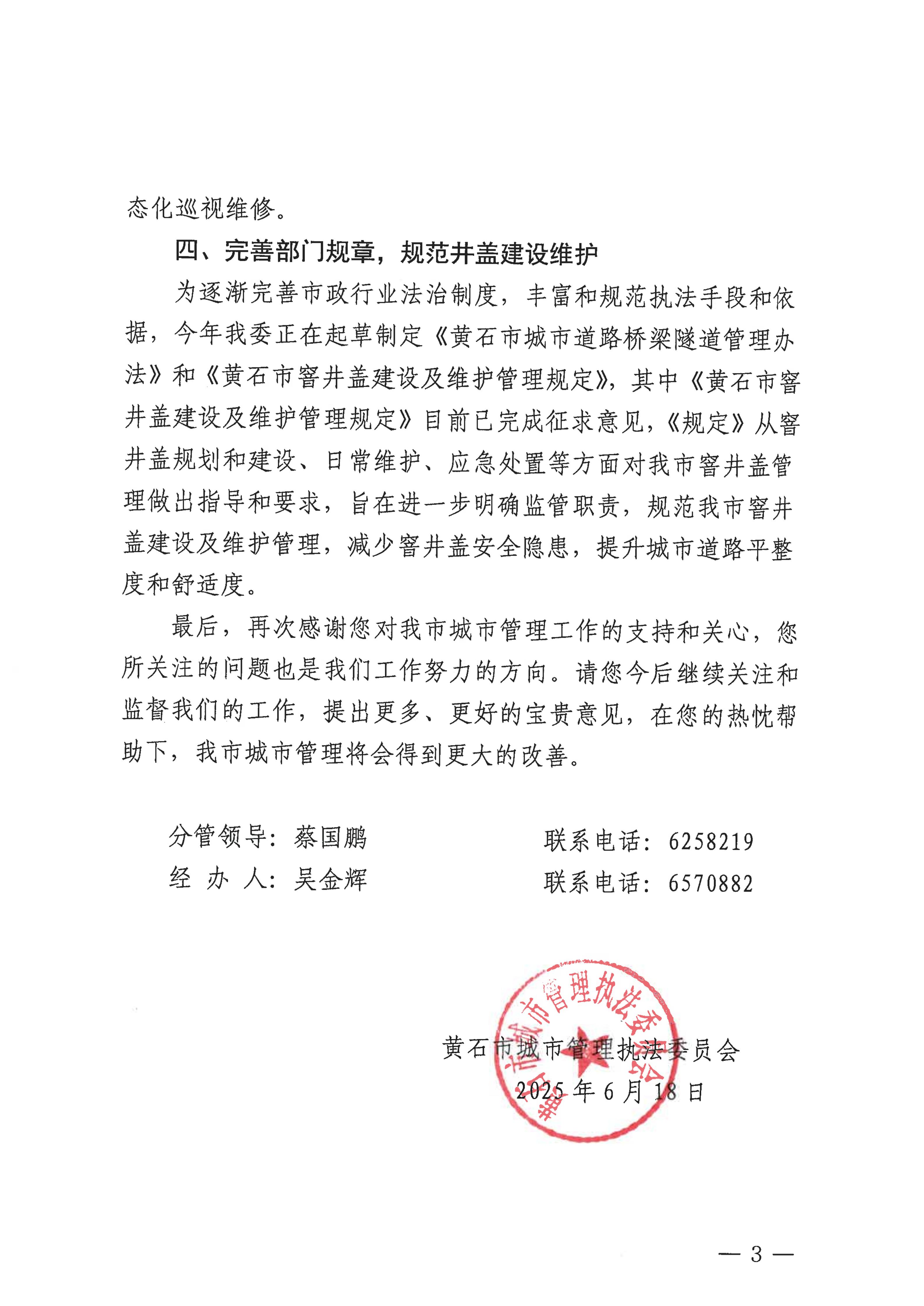 黄石市城市管理执法委员会关于市十四届政协四次会议第11号提案办理情况的回复