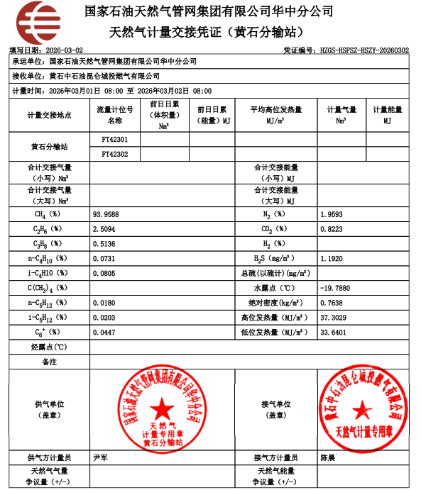黄石市城区2026年3月份天然气气质报告公示