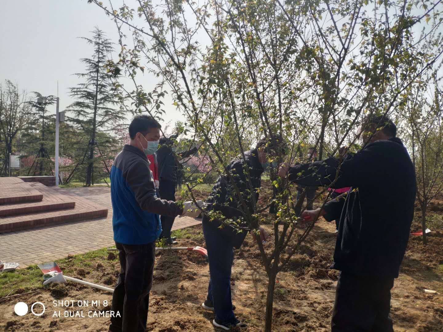 在园博园植树现场,铁锹舞动、干劲朝天,大家分工协作,相互配合,放苗扶苗、持锹培土、填土压实、提桶浇灌、修剪整形……处处都是忙碌的身影。10名园林技术专家在参加植树的人群中来回穿梭,悉心指导。经过两个多小时的辛勤劳动,大家在纪念林中栽植了南京市花——梅树100株、黄石市市树——石榴树100株。一排排新栽树苗昂然挺立,错落有致,在和煦的春风中焕发出勃勃生机,形成一道亮丽的生态风景线,也象征着江苏、黄石两地人民携手并肩、同心抗疫的深情厚谊。