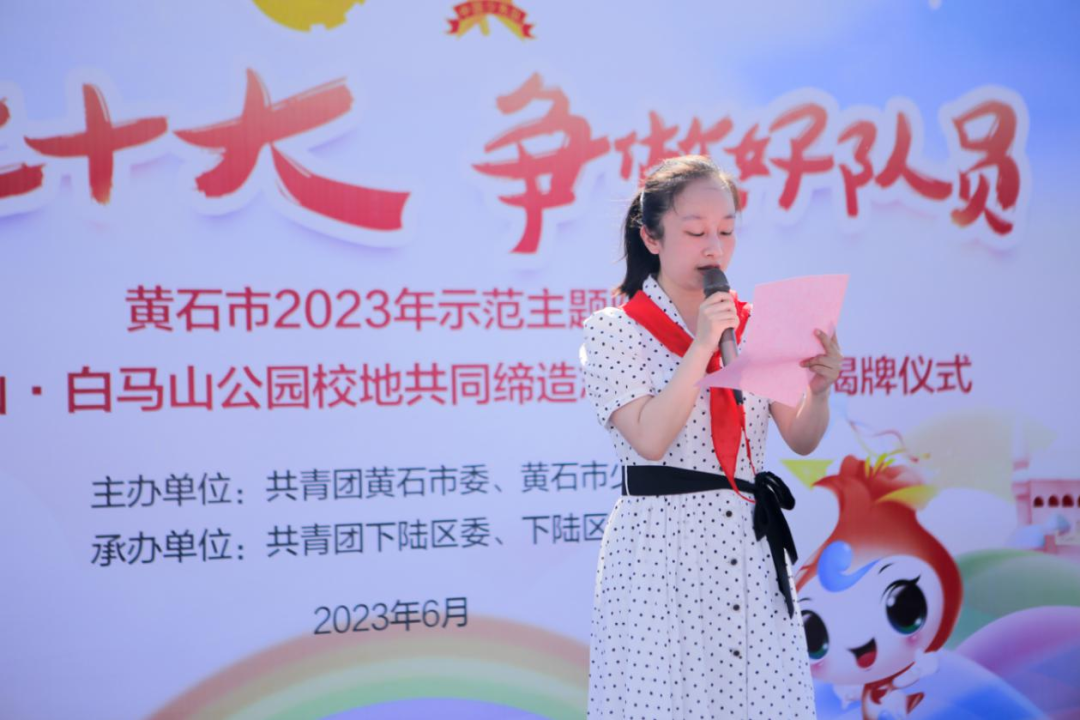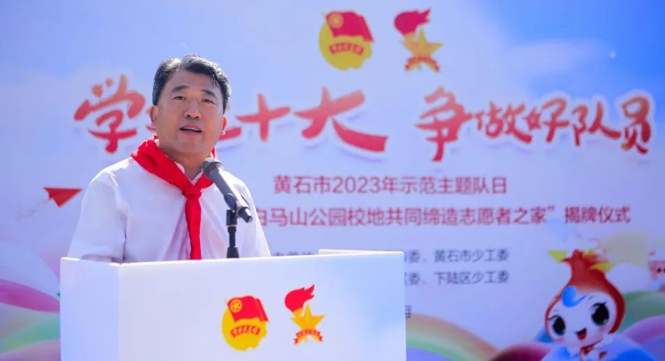 6月28日上午,“学习二十大 争做好队员”——黄石市2023年示范主题队日暨“柯尔山·白马山公园校地共同缔造志愿者之家”揭牌仪式举行。市委常委、市委统战部部长,市少工委名誉主任俞远汉出席活动。