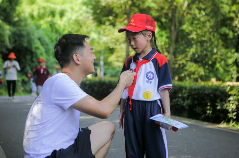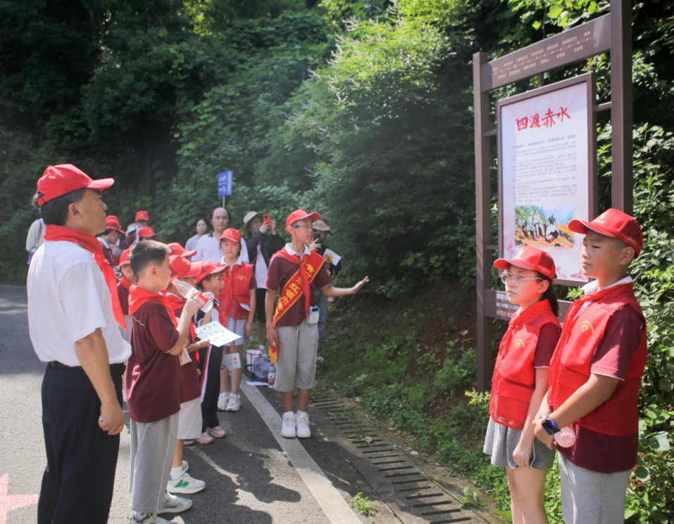 揭牌仪式后,俞远汉与少先队员一起沿白马山公园步道进行“体验长征路”徒步活动。