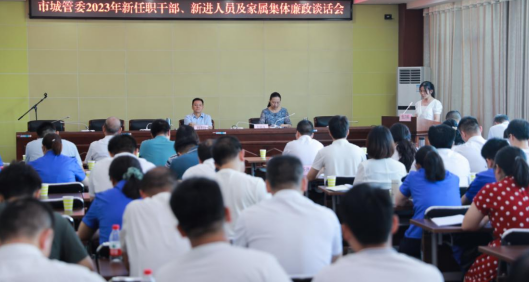 为进一步统一思想、增进共识,筑牢领导干部及其家庭拒腐防变能力,激发干事创业的激情和活力。7月28日,市城管委召开新任职干部、新进人员及家属集体廉政谈话会,委党组书记、主任周泽良作集体廉政谈话,委党组成员、副主任方敏主持会议。