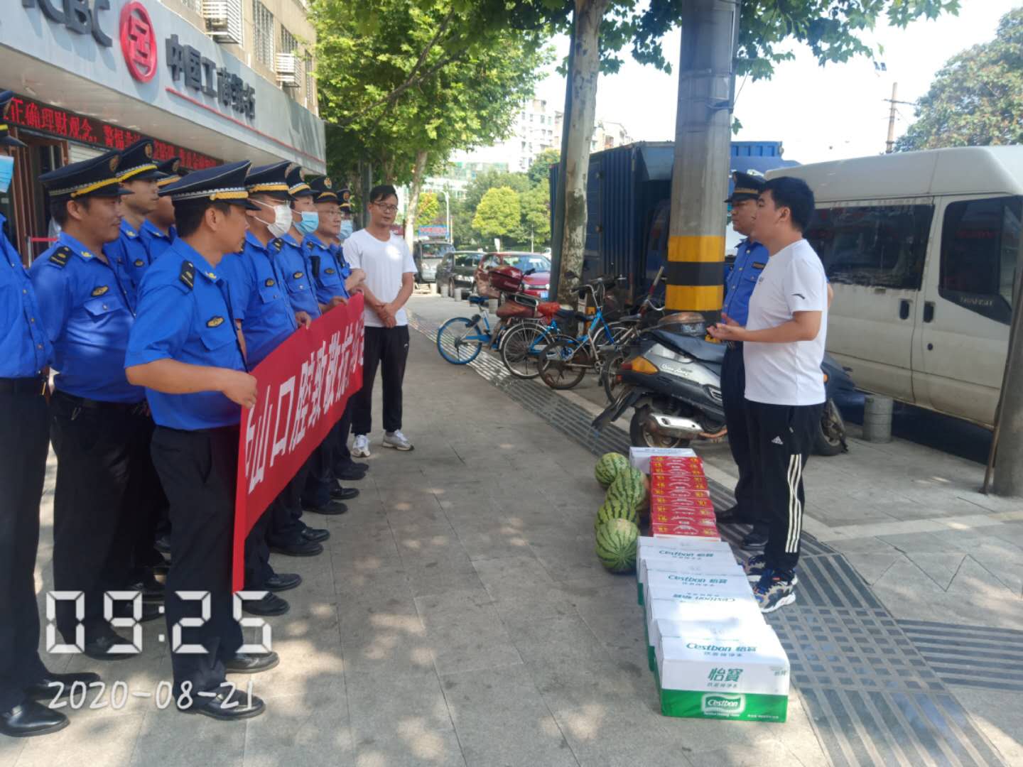 为对城市管理人员表示敬意,近日,中山口腔医院工作人员对西塞山区城市管理执法局一线城管队员开展慰问活动,为队员们免费检查口腔问题,并送来矿泉水、八宝粥、西瓜等物资,为城管队员们送来来清凉。并嘱咐队员们高温天气下作业要劳逸结合,注意做好防暑降温,确保工作安全。