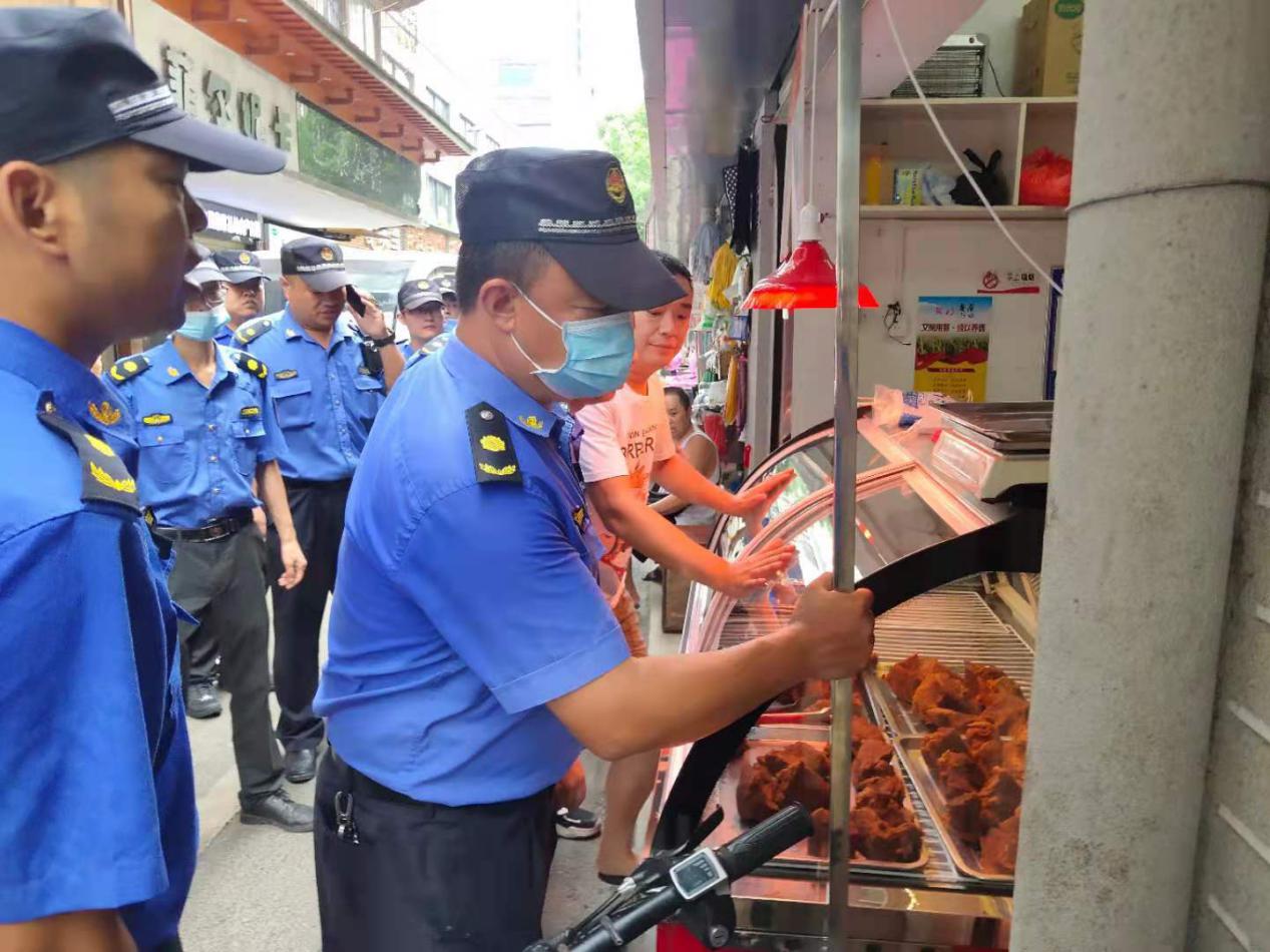 8月23日,针对永安路农贸市场周边出店经营、乱摆乱占和流动摊贩问题,胜阳港街办城管中队再次组织集中整治行动,对“牛肉巷”、永安路等市容违规占道经营等问题进行重拳整治。