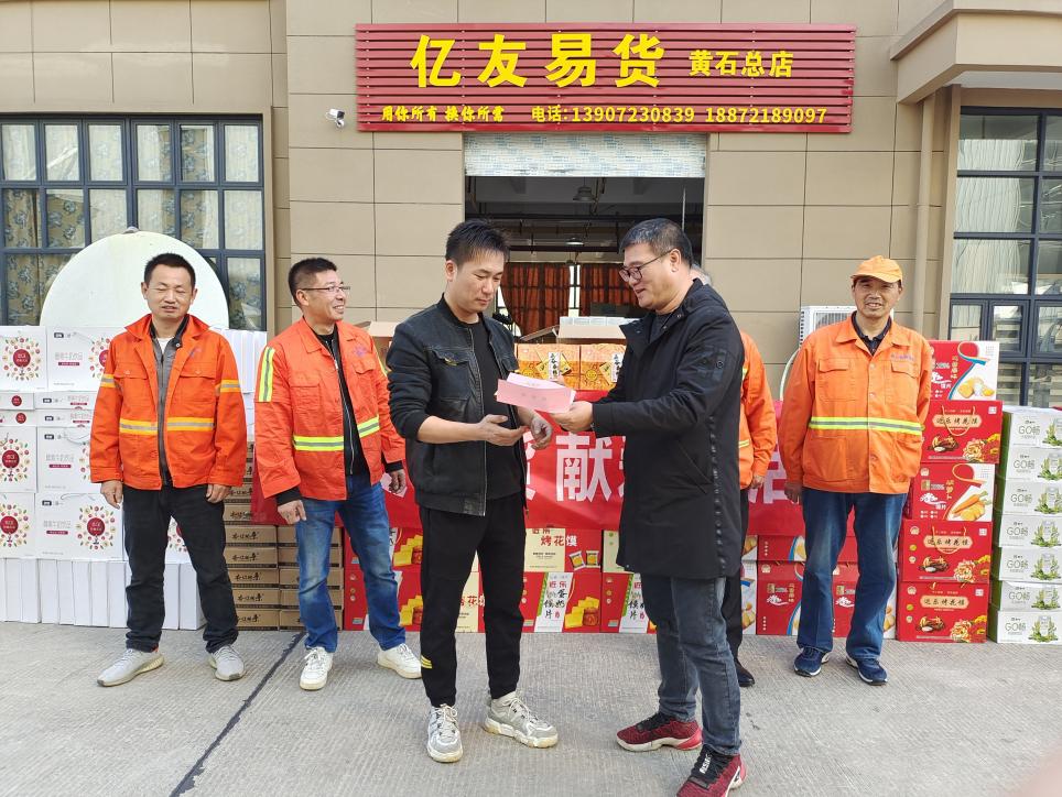 为表达对一线环卫工人的关心和关爱,10月12日,爱心企业湖北森捷商贸有限公司向铁山区城维园林绿化公司的环卫工人无偿捐赠价值54593元的爱心食品共计800份,感谢他们为打造干净、优美、整洁的城市环境辛勤付出。