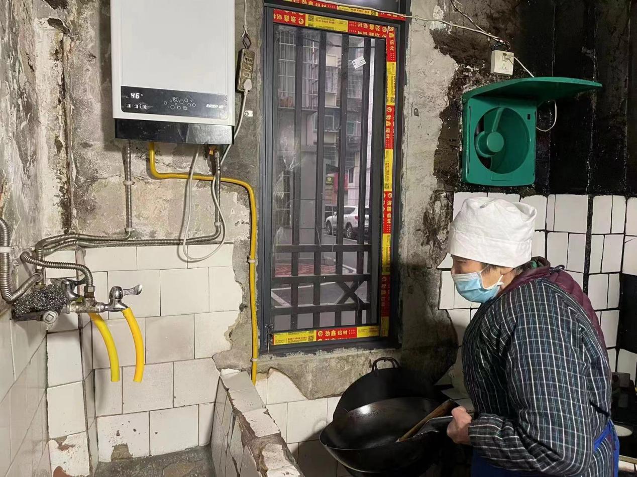 图为市燃热办上门检查孤寡老人家中用气安全情况