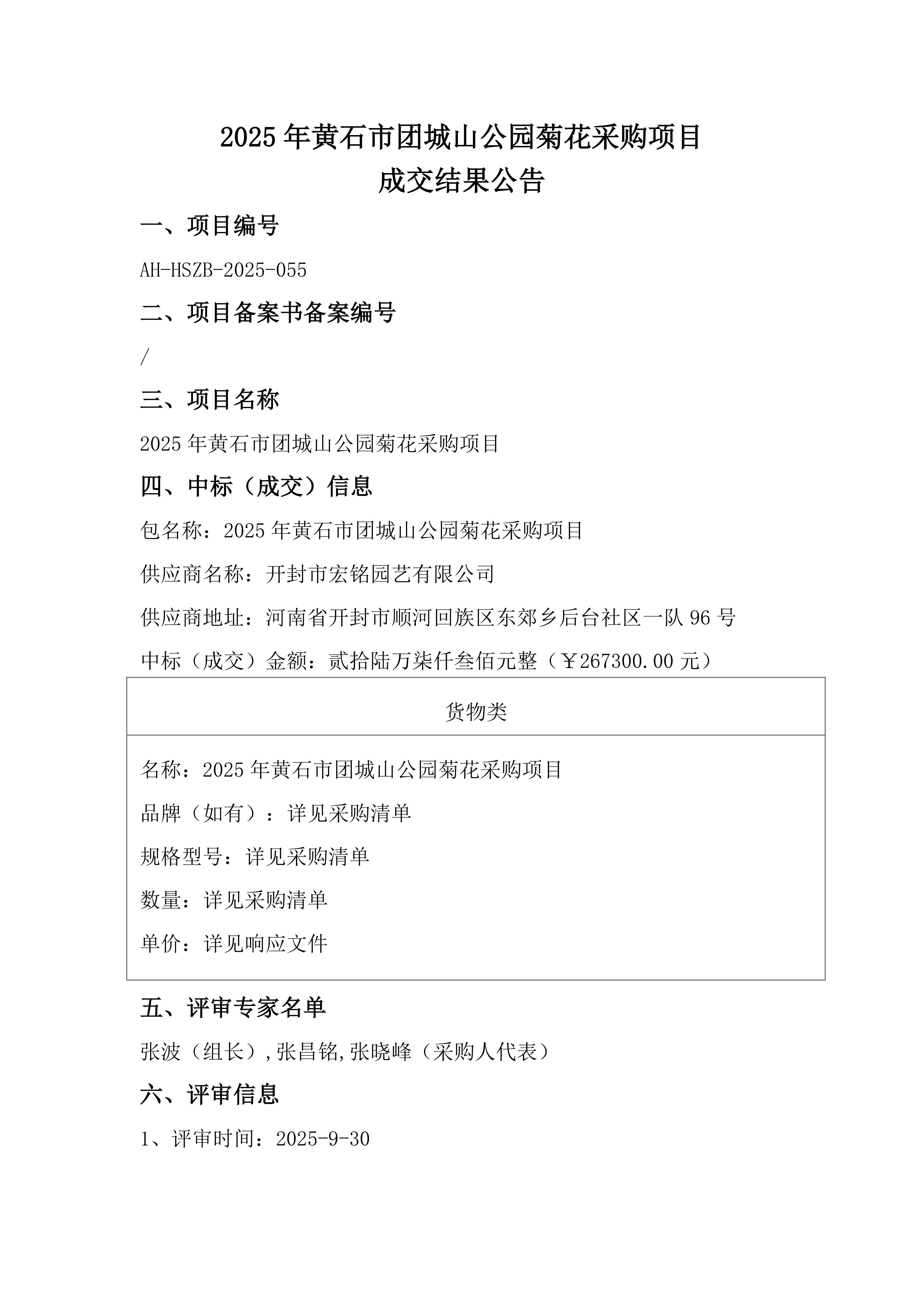 2025年黄石市团城山公园菊花采购项目成交结果公告