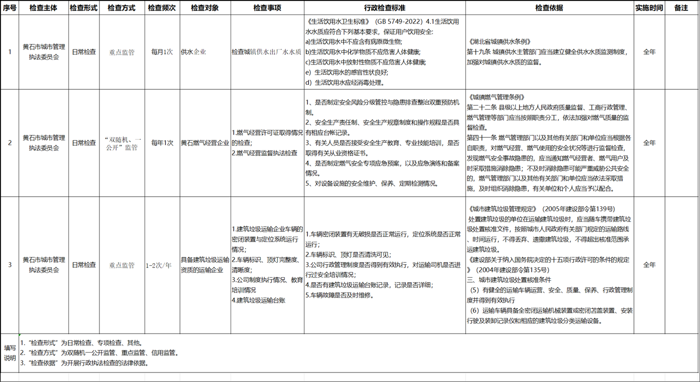 黄石市城市管理执法委员会2026年度行政执法检查工作计划
