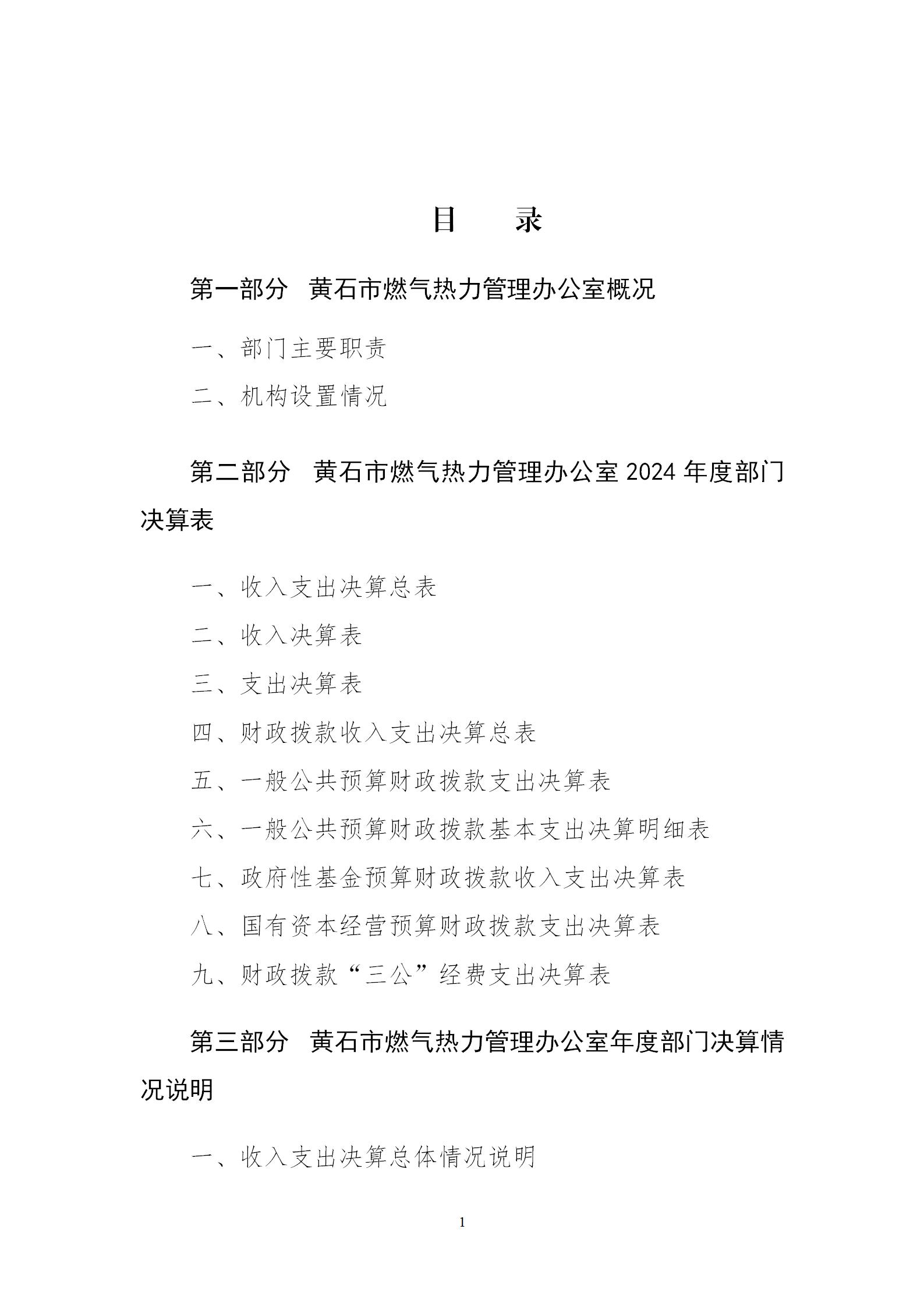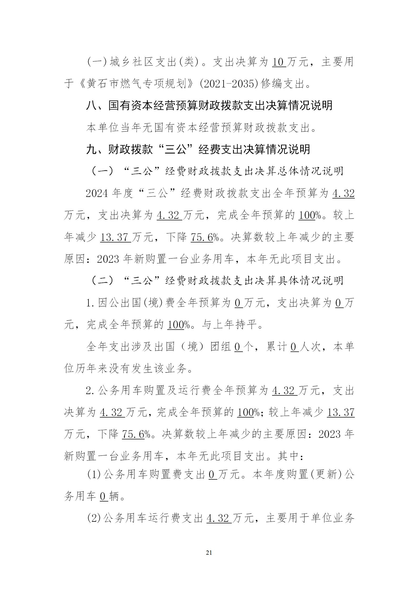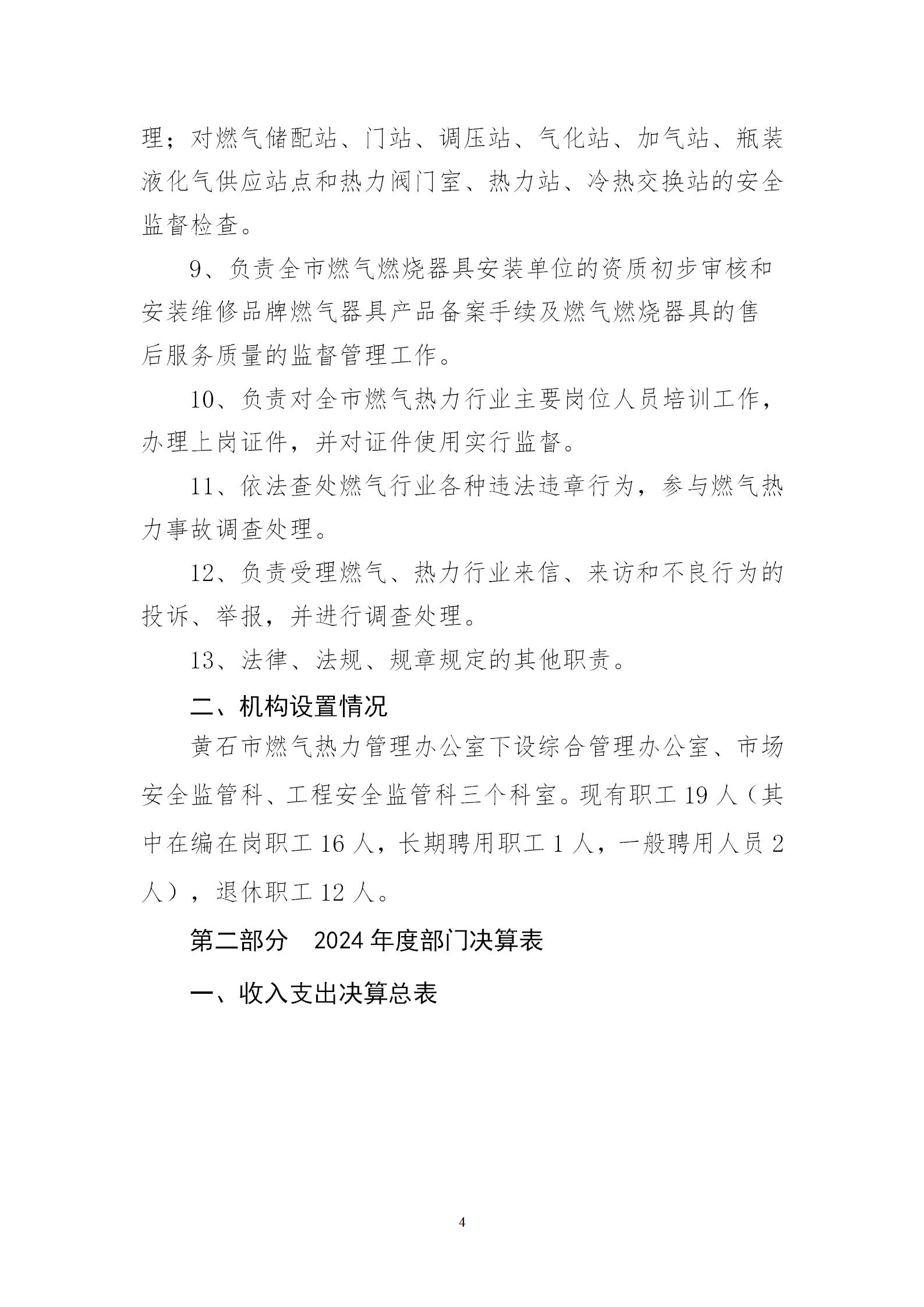 黄石市燃气热力管理办公室2024年度部门决算