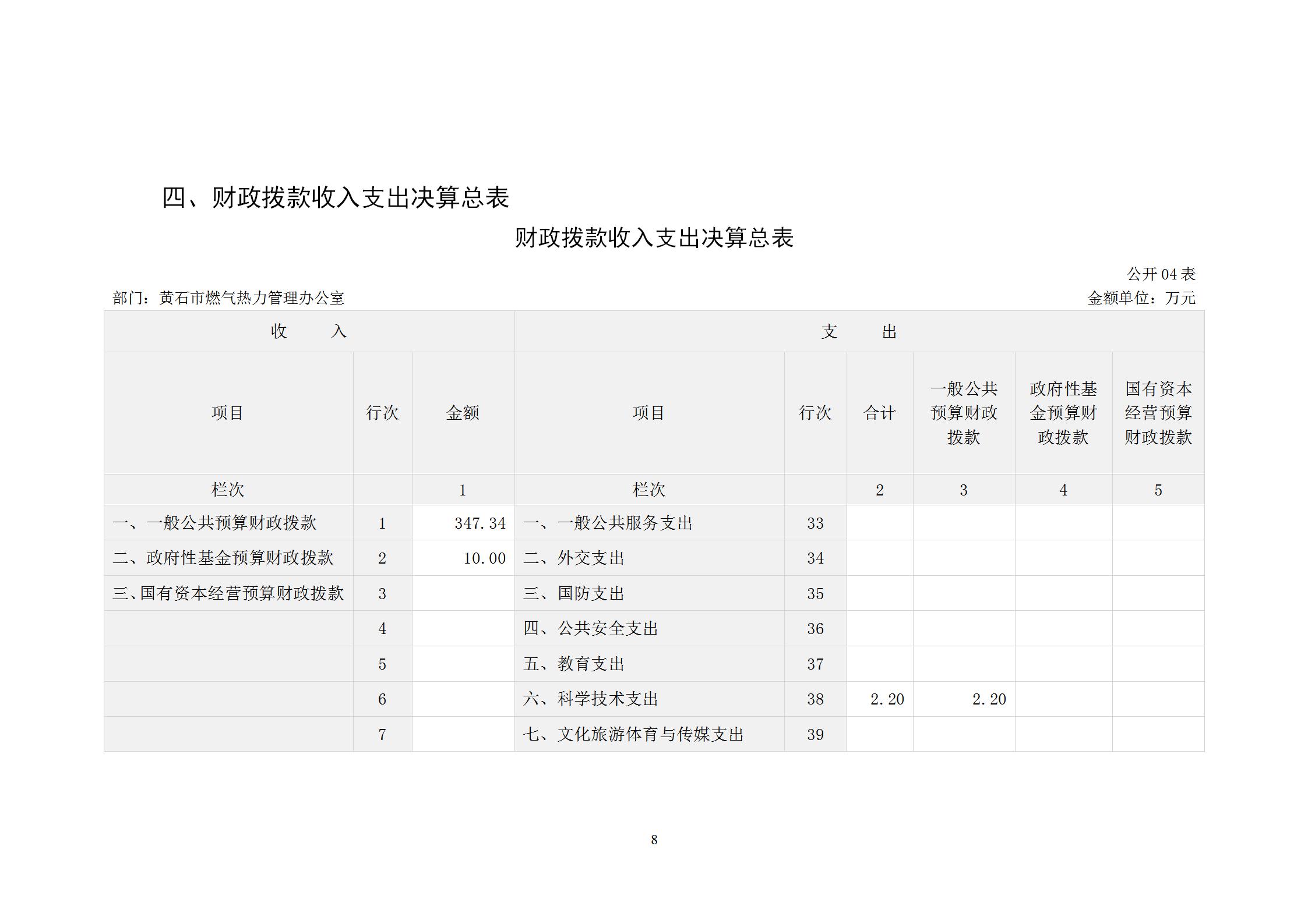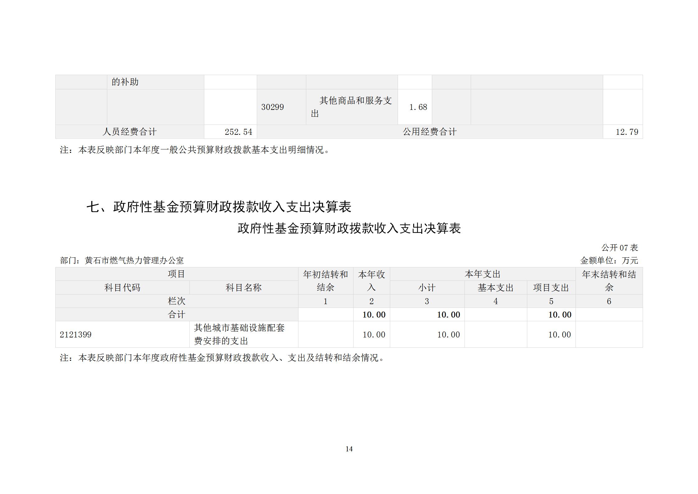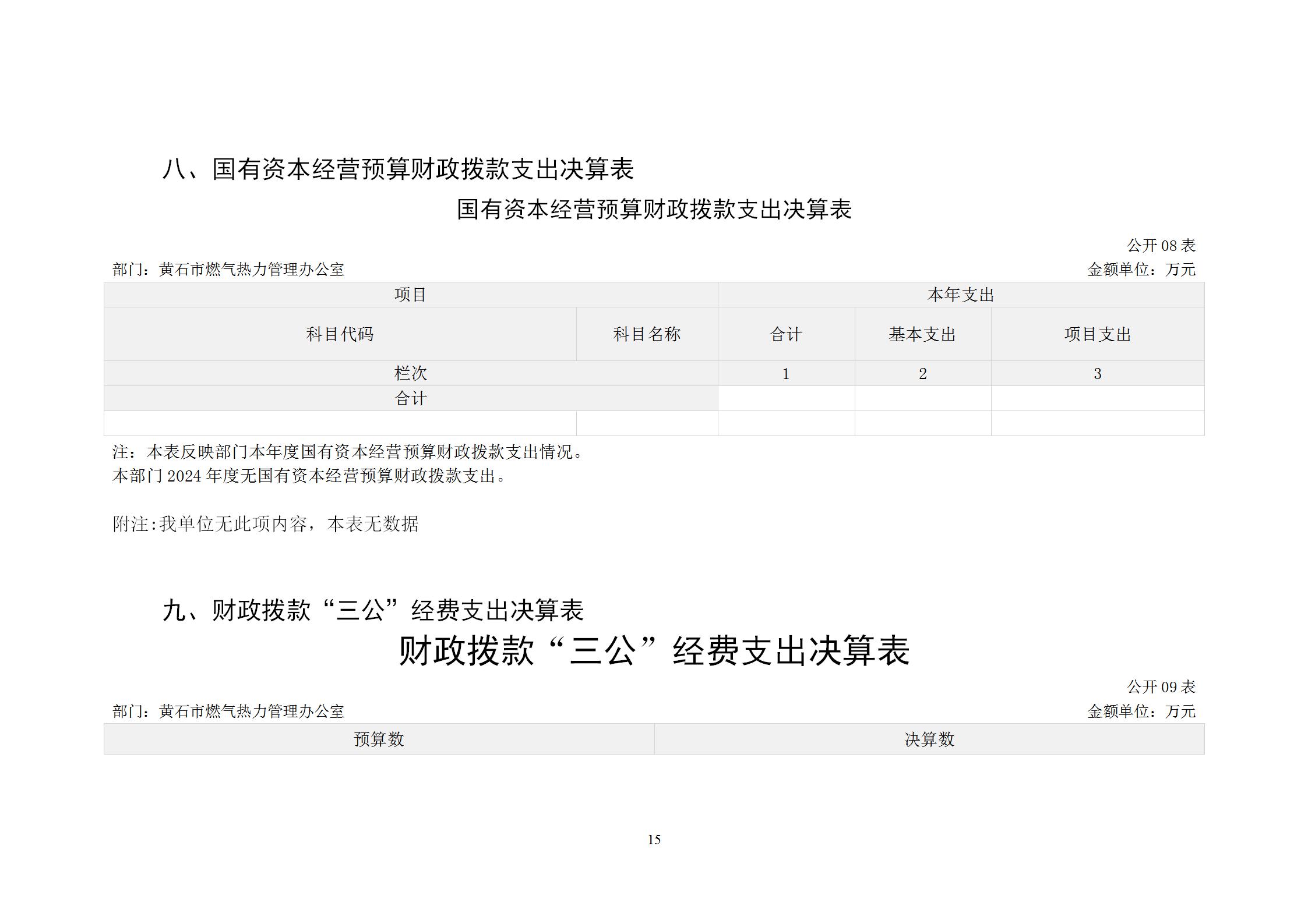 黄石市燃气热力管理办公室2024年度部门决算