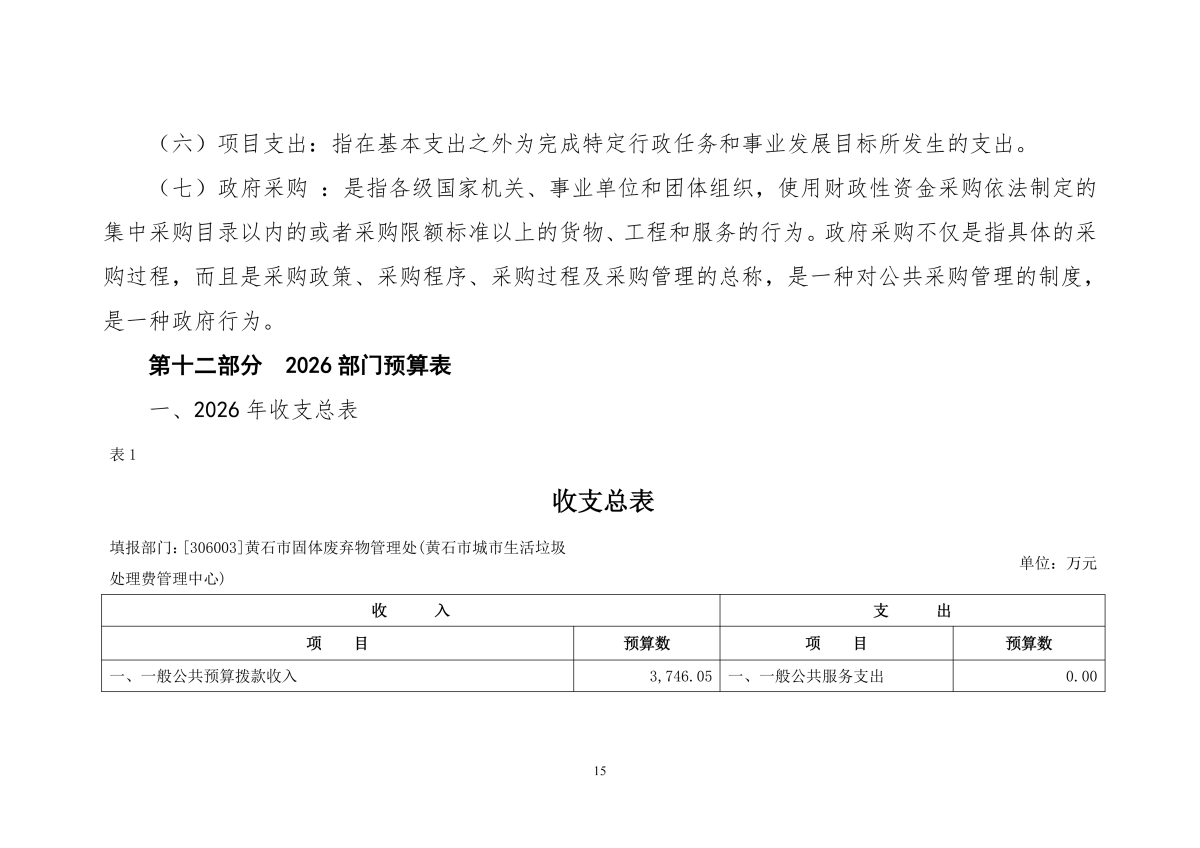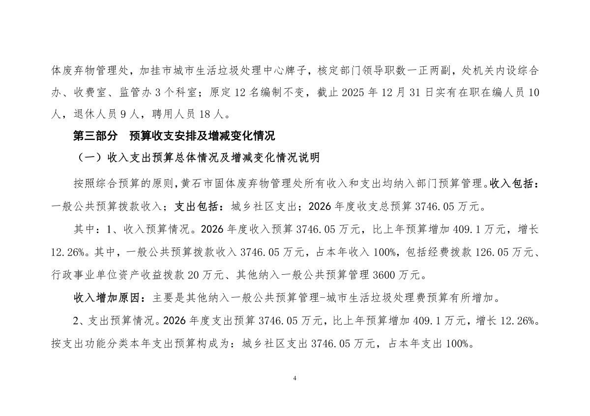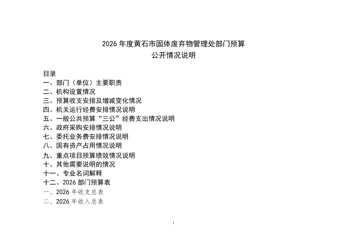 2026年度黄石市固体废弃物管理处部门预算公开情况说明