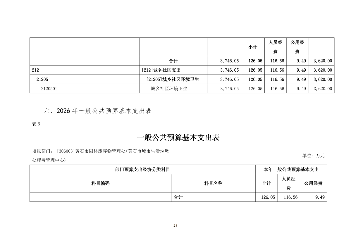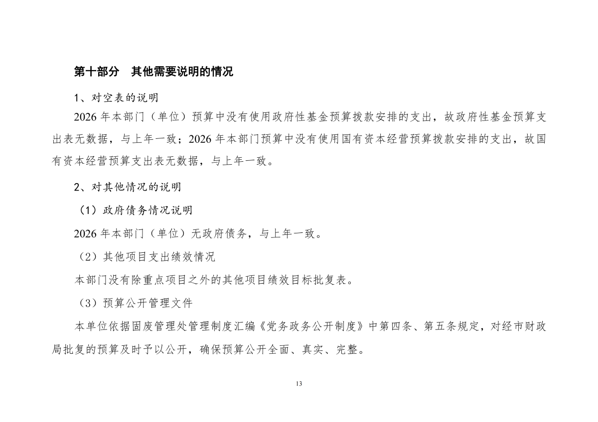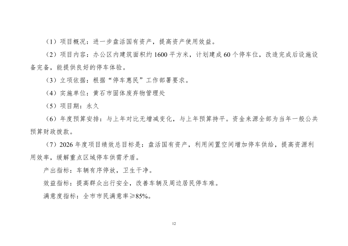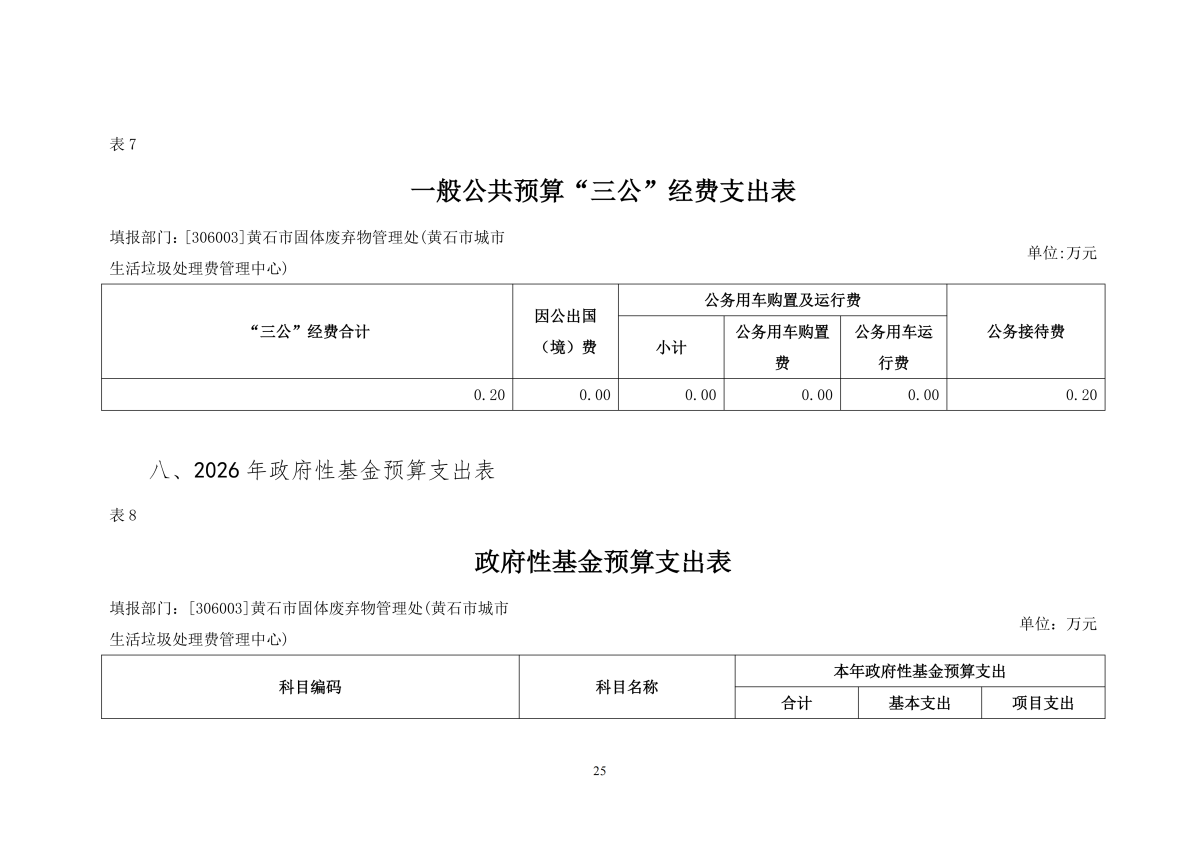 2026年度黄石市固体废弃物管理处部门预算公开情况说明