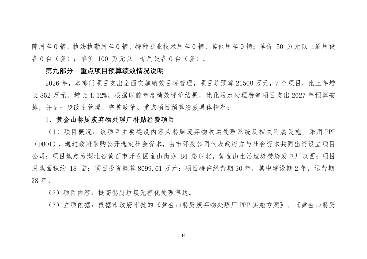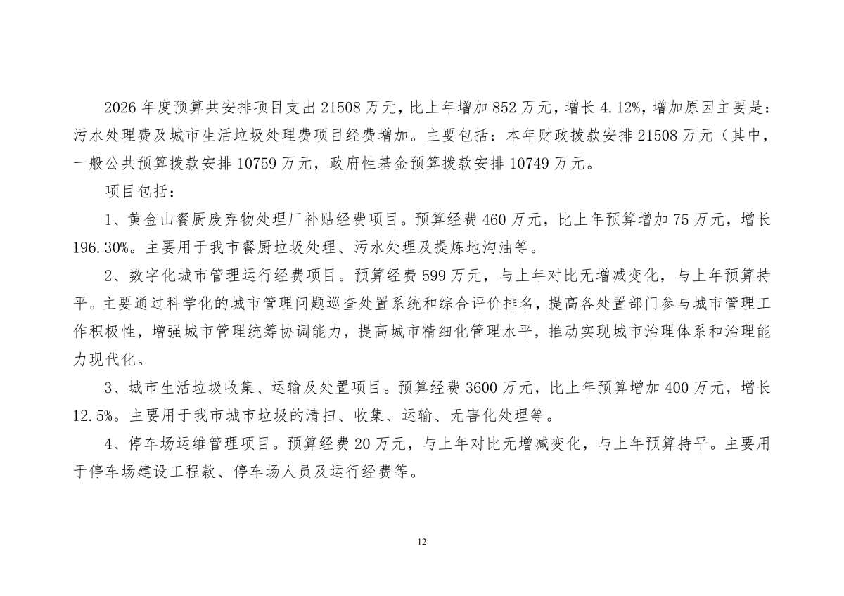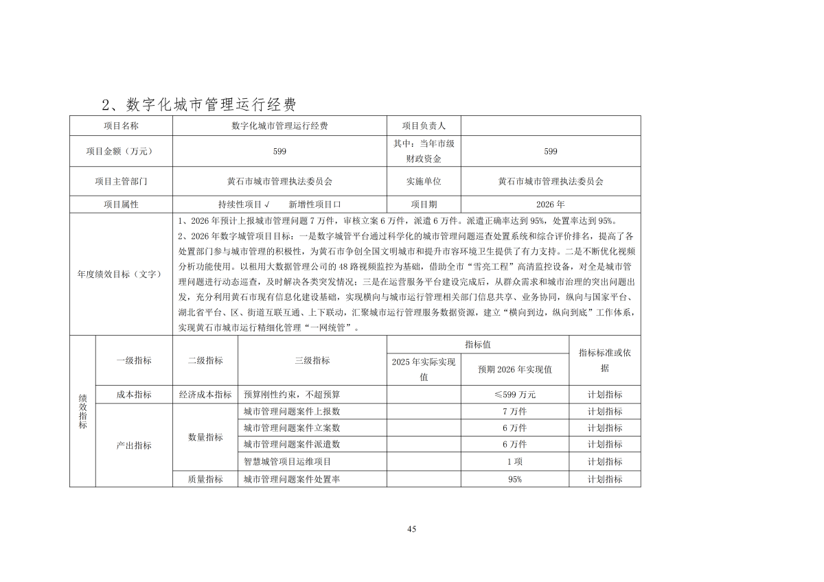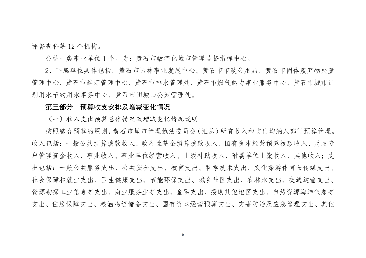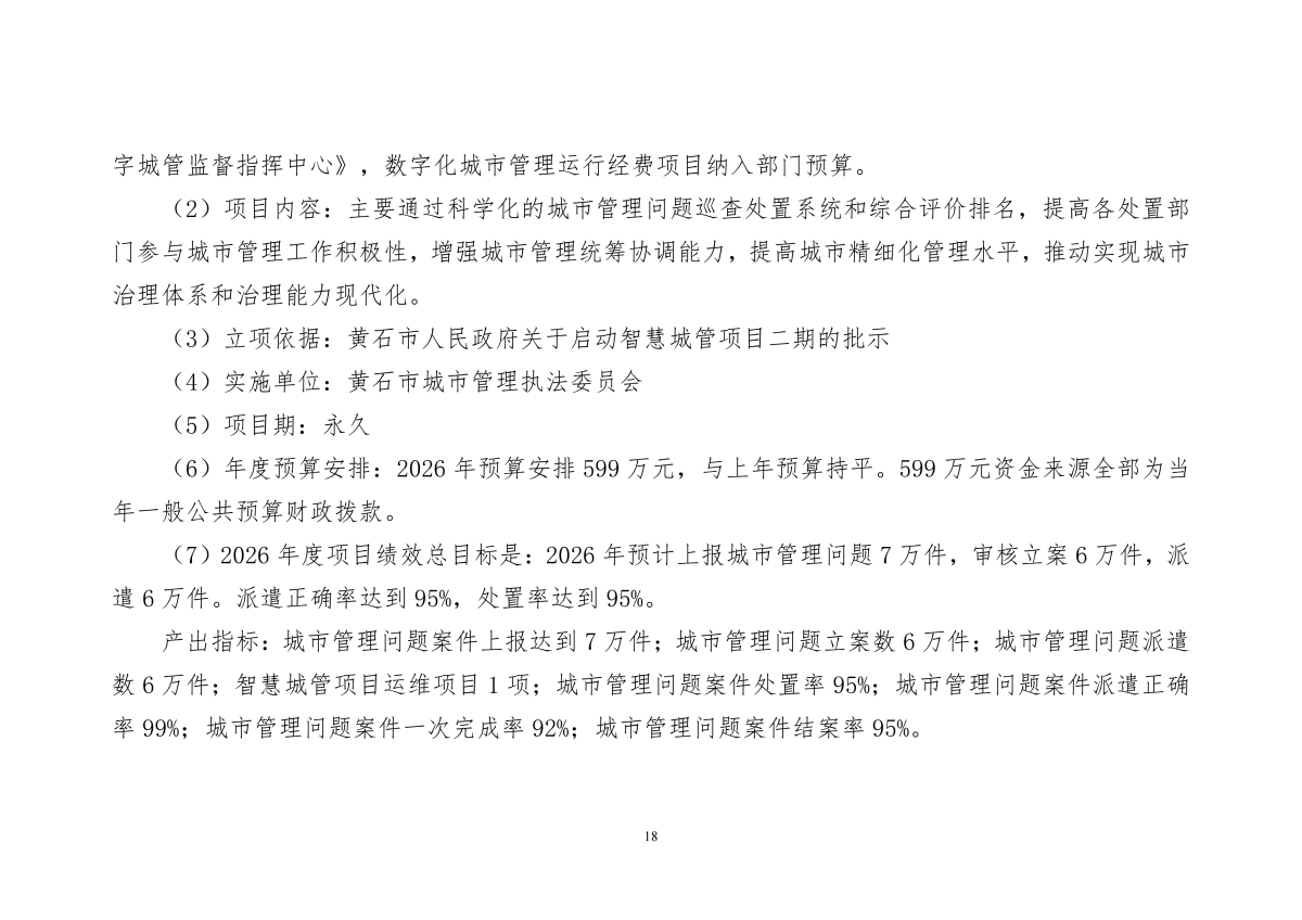 2026年度黄石市城市管理执法委员会(汇总)部门预算公开情况说明