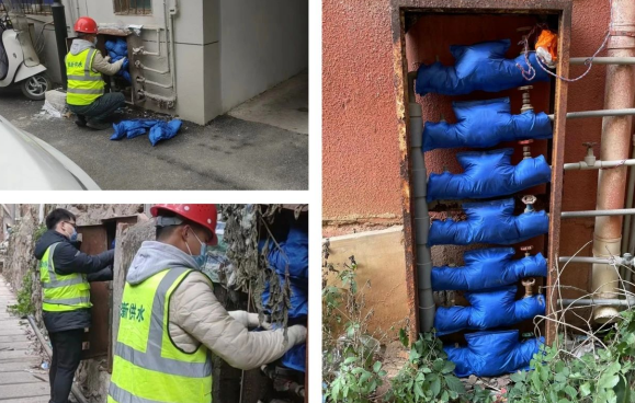 (大冶铜都自来水公司对部分易冻水表进行防冻包裹处理)